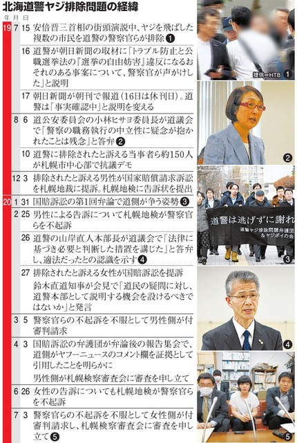 昨夏の参院選で、札幌市で街頭演説中の安倍晋三首相にヤジを飛ばした市民が北海道警の警察官に排除された問題は、15日で1年がたった。警察官の行為の違法性を問う検察への告訴は不起訴となり、民事裁判は係争中だ。一方、この問題が投げかけた、政治的な意見も萎縮せずに表明しようという市民たちの思いは確実に広がっている。