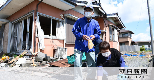 遠藤さん宅では知人の男女らが敷地内の片付けを手伝っていた。男性の一人は「JAに用事があって来たら、この家がひどいもんだったから」と、懸命にがれきを袋に詰めていた。(和田翔太、魚住あかり)