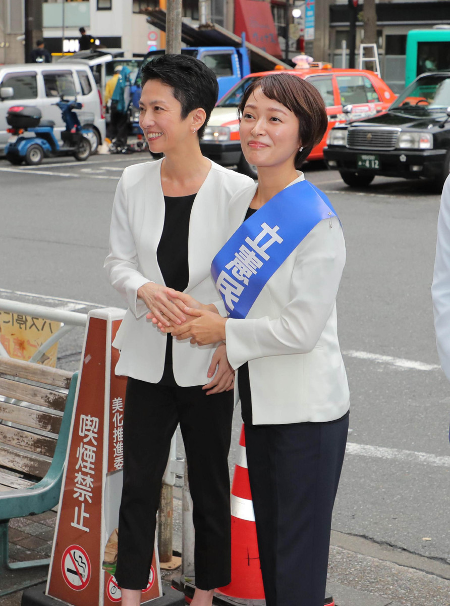 先日の出馬表明会見では、14歳を筆頭に4児の母親であることを強調し、子育て支援政策の拡充を訴えていきたい意向を示した。この日は「4人の子供を育ててきました」と言うところを「4歳の子供を育ててきました」と言い間違え、隣の蓮舫から“ツッコミ”を受けるなど初々しい姿を見せながらも「誰かの声を待っているだけでなく、子育て当事者として踏み出さないと絶対に後悔すると思いました」などと訴えると、集まった支持者からは「頑張って!」などの声が飛んでいた。