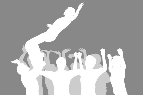 人間起こしは、数人の土台の上に1人が立ち、後ろ向けに倒れて土台が受け止めるという技だ。その後、振り子のように前後に揺れる動作を繰り返す。