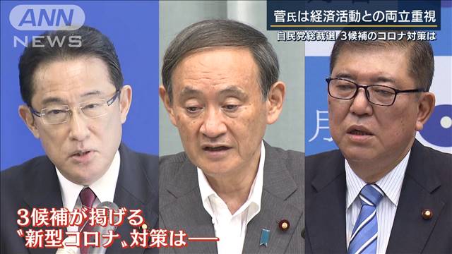 14日に行われる自民党総裁選に向け、各陣営が選挙活動を活発化させています。 4日に選対本部を立ち上げた菅官房長官。陣営は、朝から各事務所を訪問するなどしました。菅氏の政策パンフレットの表紙には『自助・共助・公助』と書かれています。アベノミクスの継承を掲げる菅氏は、新型コロナウイルスの感染症対策を打ちつつ、経済を回していくことを重視しています。菅氏は3日に出演したテレビ番組で、感染の状況次第では、解散に踏み切るとも受け取れる発言をしました。菅氏は4日、「引き続き感染リスクをコントロールしながら、社会経済活動のレベルを段階的に引き上げていきたいと思う。解散については、新しい内閣の話だと思っている」と述べました。 石破元幹事長も4日、政策集を発表しました。石破氏も「感染症対策と経済対策の両立」を掲げていますが、そのためにも「PCR検査の抜本的な拡充が必要」としています。また、合わせて「税負担の軽減を含む経済的支援」を訴えています。 PCR検査の拡充については、岸田政調会長も同様に掲げています。4日に出席した自民党の新型コロナ対策本部でも「感染症対策のみならず、経済対策、経済や社会を動かすためのPCR、あるいは検査、こういったものについて考えていかなければいけない」と述べました。3日に日本歯科大附属病院を視察した岸田氏は、医療機関の経営が悪化している状況について、「財政面の支援が必要だ」とも訴えています。