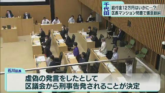東京・千代田区は新型コロナウイルス対策として、区民に1人当たり12万円を給付することを検討しています。石川雅己区長は7月27日、この給付案を区議会に提出しましたが、区長の「マンション購入問題の疑惑隠し」のためなのではないかと厳しい質問が飛び、議会が混乱しています。動画でご覧ください。