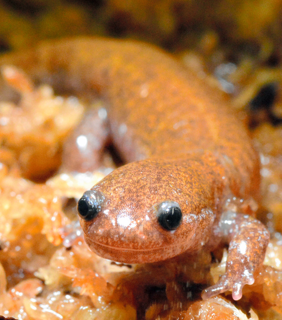ホクリクサンショウウオは体長約10センチ。能登半島と富山県の一部に生息する。成体は山間部にすみ、水田の水路など緩やかな水流のある場所で卵をうむ。近年は耕作放棄地の増加などに伴い、繁殖地が減少しているという。