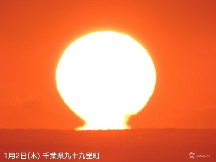 千葉県九十九里町では、水平線から昇る朝陽がダルマのように見える「だるま朝日」が見られました。