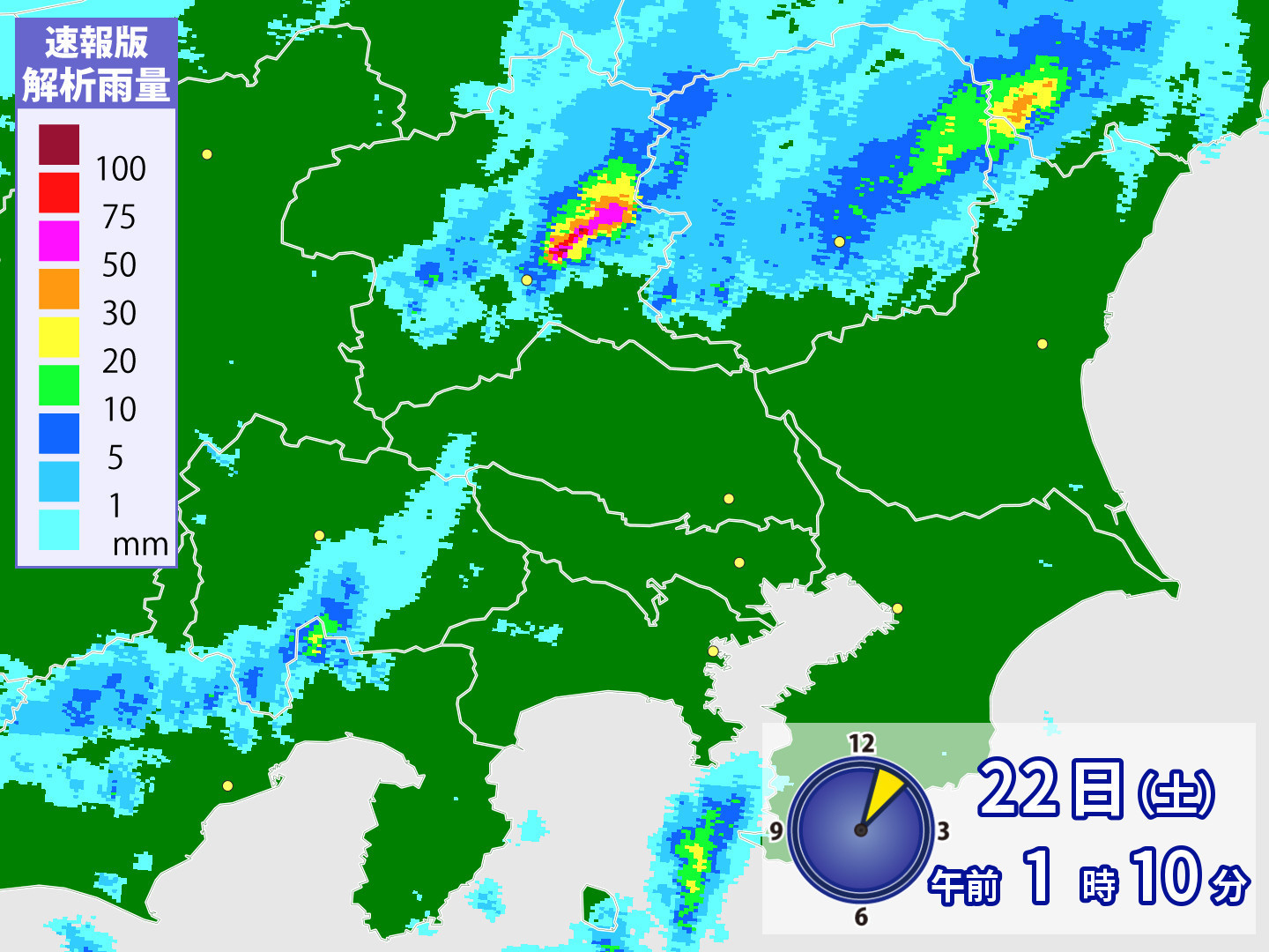 桐生市黒保根町付近 約100ミリ(午前1時10分)