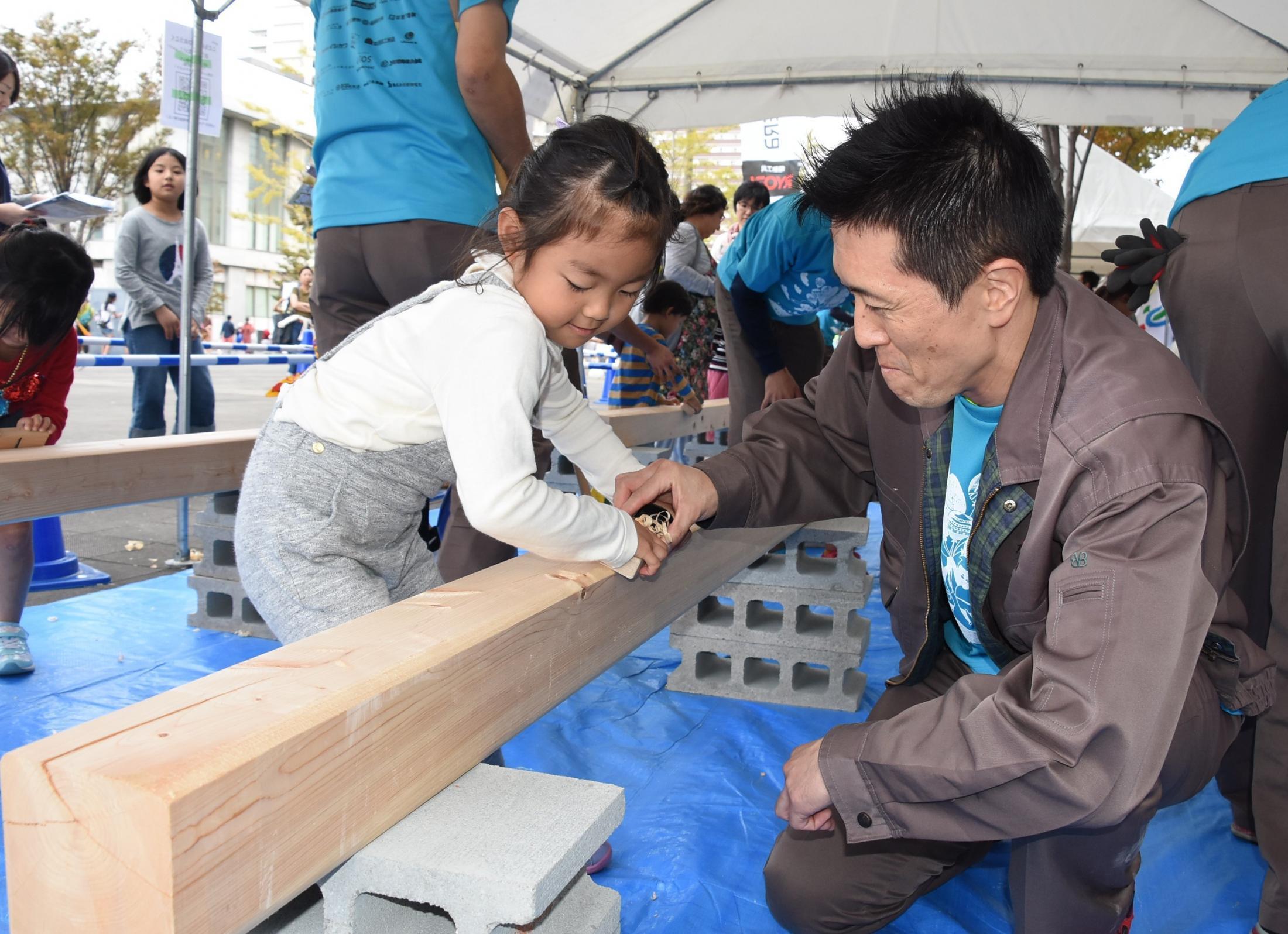 昨年に続き参加した同区の小学4年織田樹麒(いつき)君(10)の将来の夢は建築家で「職人さんと建物を造って感動してみたい」。人材難が進む業界を支える芽が一つ育ったようだ。