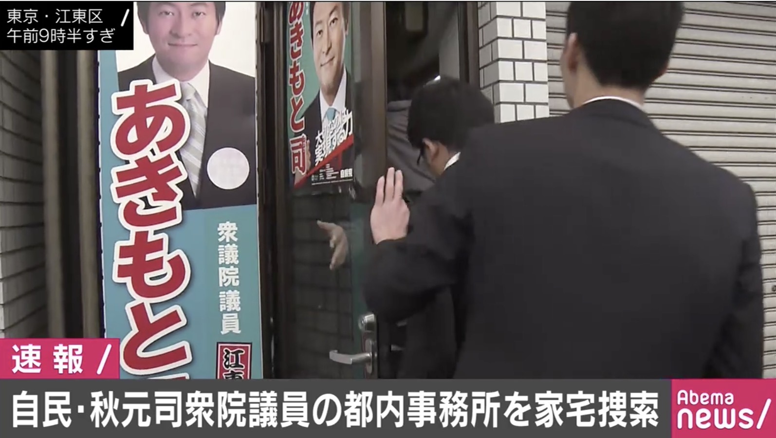 東京地検特捜部は19日午前、外為法違反事件の関係先として東京・江東区にある自民党の秋元司議員の事務所に家宅捜索に入った。