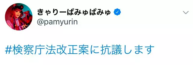 俳優の城田優さんは「大事なことは、ちゃんと国民に説明してから、順序に則(のっと)って時間をかけて決めませんか?」とツイート。政府が法改正を急ぐことに疑問を呈した。演出家の宮本亞門さんも「コロナ禍の混乱の中、集中すべきは人の命。どうみても民主主義とはかけ離れた法案」と書き込んだ。「人事や捜査への政治介入を招く」と問題視され、俳優の小泉今日子さん、元格闘家の高田延彦さん、歌手のCharaさん、モデルの水原希子さんらも自身や事務所のアカウントで投稿し、法案への疑義を示した。