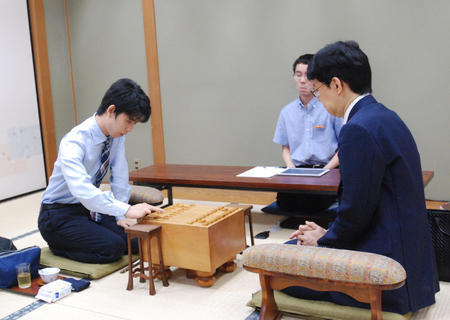 両者は初手合い。ともに中学2年、14歳でデビューした「天才棋士」同士の序盤戦は、落ち着いた展開が繰り広げられている。