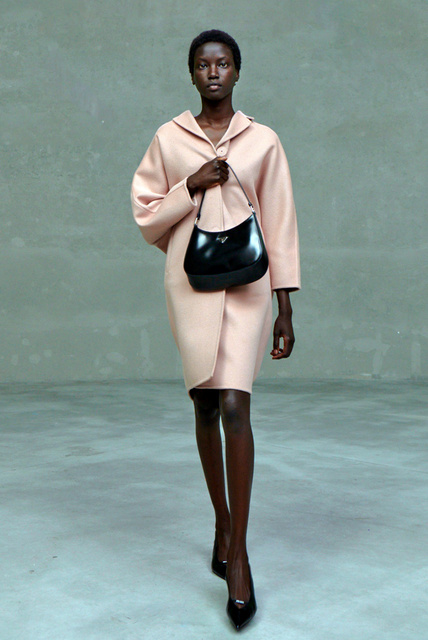 デザインはスポーティーで極めてシンプル。ナイロンやタフタ、襟の形がトロンプルイユのスーツなどプラダがこれまで得意としてきた軽い素材やテクニックが多い。