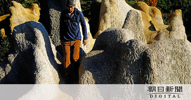 標高約400メートル。奇妙な形の花崗(かこう)岩があちこちに突き出た岩場「万物相」まで登った。褐色の岩の向こうに、雲一つない青々とした空が広がった。