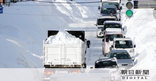 この日、中心市街地の道路脇には2~3メートルの雪壁が連なり、車からは店の2階部分が見える程度。道幅も狭く対向車とはすれ違うのがやっとで、あちこちで渋滞がおきていた。夕方から再び暴風雪になり、商店主は「いつまで続くのか。本当に参った」とため息をついた。