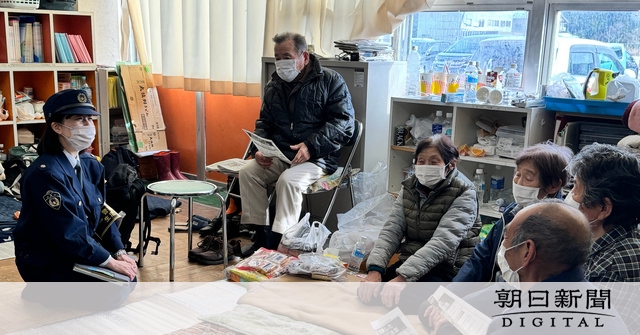 15人の警察官は5チームに分かれて、11日から輪島市内で活動。14日は石川県出身の岸知穂警部らが大屋小学校の避難所を訪れた。震災に乗じた詐欺や、ボランティアを装った避難所での盗難などへの注意喚起をしたり、近況や悩みを聞き取ったりした。
