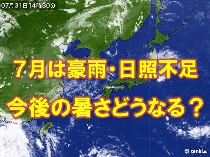 7月は台風の発生がなかった一方で、長い期間、豪雨に見舞われ、梅雨明けが遅れています。さて、今後の暑さはどうなるのでしょうか?