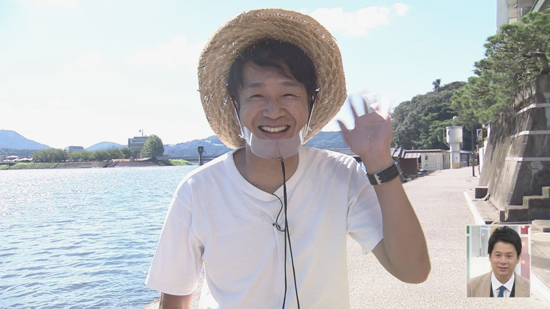 小田アナがいるのは水のきれいな日田市のシンボル・三隈川の岸辺。そこには大きな屋形船と涼しげな浴衣の女性2人が。「水郷ひたキャンペーンレディ」の麻生文子さんと上戸木綿子さんです。麻生さんは「(近隣の)旅館が所有する29隻の遊船(屋形船)のうち10隻が流されました」と水害当時を振り返りました。画面には濁流となった三隈川に流されていく遊船が映し出され、スタジオの面々も被害の大きさに胸を痛めます。それでも小田アナは「この状況からみなさん立ち上がっています。今日は元気に中継をお届けします!」とリポート開始です。