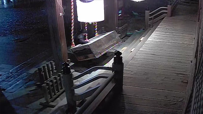 8日夜、福島・郡山市の神社で、男がさい銭箱をひっくり返し、現金を盗む一部始終を捉えた映像。