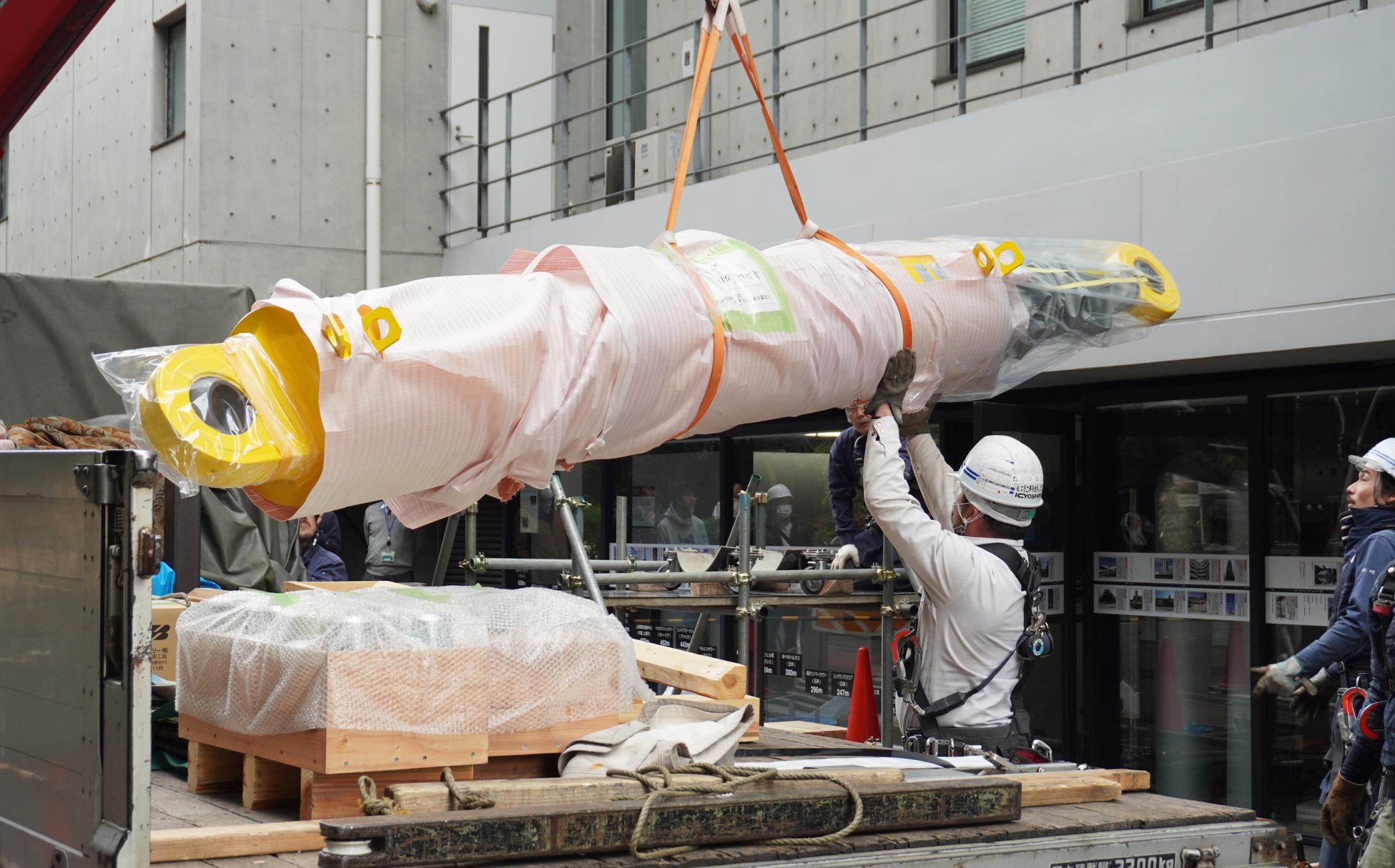 名古屋大学の防災・減災研究棟「減災館」で3日、地震時に建物の揺れを抑える役割を果たす「免震用オイルダンパー」の交換作業が始まった。2018年に不正が発覚したKYBグループ製で、データ改ざんの有無は不明だが、交換対象となっていた。名古屋大はこの交換を機に、ダンパーを1本入れ替えるごとに建物全体を人工的に揺らす実験を実施。建物の安全性を確認すると共に、得られたデータを今後の免震研究などに役立てる狙いだ。