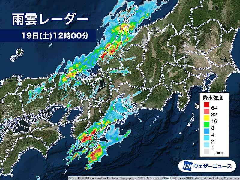 和歌山県田辺市の栗栖川では12時15分までの1時間に43mmの激しい雨を、石川県羽咋市では11時57分までの1時間に36.5mmの激しい雨をそれぞれ観測しています。