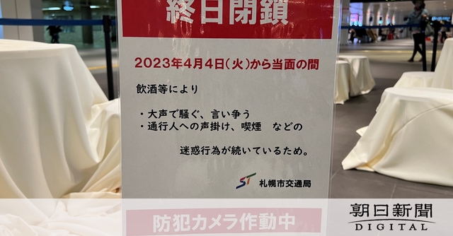 「市民の憩いの場」として設けられた一角が、閉鎖される事態が1カ月以上続いている。札幌中心部に広がる地下空間だ。迷惑行為の多発が理由で、逮捕者も出ている。何が起きているのか。札幌にゴールデンウィーク明けに赴任した記者2人が現場を取材した。