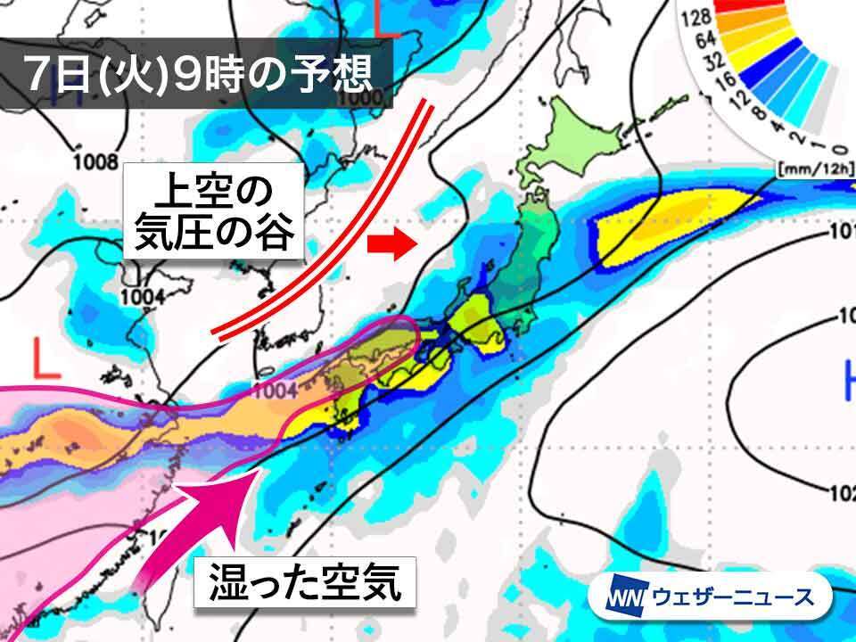 あらかじめ、最寄りの避難所の確認や避難用品の準備、避難手段の確保など最悪の事態を想定した備えをしてください。 8日(水)も前線は本州付近に停滞しますが、暖かく湿った空気の流れ込みは収まり強雨のピークは一旦越えると見ています。ただ、7日(火)までに積算雨量がかさむおそれがあるので油断はできません。 梅雨前線や低気圧の位置によって天気が著しく変化するので、最新の情報をこまめに確認するようにしてください。