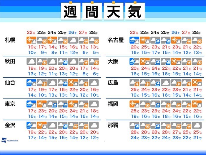 この先1週間は、北から強い寒気が日本付近に南下することはなく、南から緩やかに暖かい空気に覆われる日が多い予想です。