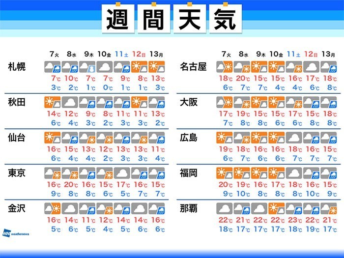 週後半になると再び寒の戻りがあると見られるため、気温変化で体調を崩さないように注意が必要です。