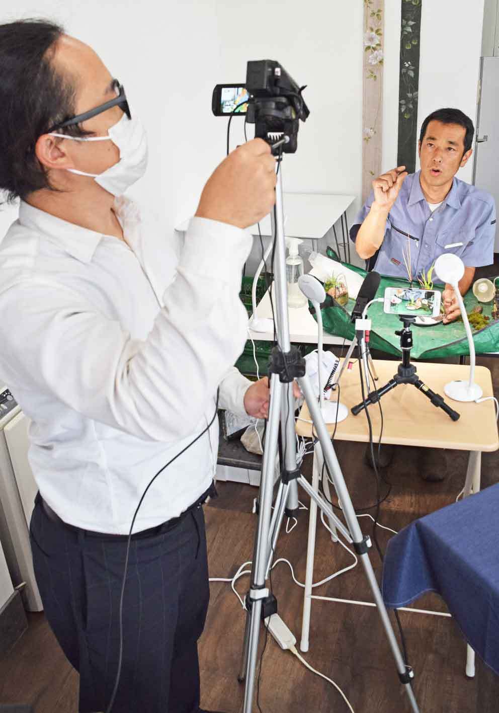 群馬県沼田市の「N3コワーキング&カフェ」。定期的に、オンライン寄せ植え体験講座の配信が行われる場だ。講師は、同県片品村でジニアやケイトウ、マリーゴールドなど約100種類の花壇苗を生産する花苗農家の星野学さん(42)。撮影、司会進行はカフェを運営する若者の起業家有志団体「N3」が担う。 参加者には事前に制作セットが送られ、当日は自宅からスマートフォンやパソコンで受講する。カフェに設置されたテレビには参加者が映り、星野さんが画面越しに質問に答えながら寄せ植えを完成させる。 7月末の講座では、地域のコケや植物をガラスの器に組み合わせる「苔(こけ)テラリウム」を制作。赤ちゃんの世話をしながらの参加や、青森、山梨など遠方からの参加が目立った。星野さんは「周りを気遣いながら講座を受けなければならない人や、移動が困難な人にも受けてもらうことができそうだ」と可能性を感じる。 星野さんは花苗生産の他、利根沼田エリアを中心に埼玉や東京で年間約100回の園芸講座を開いてきた。しかし、新型コロナの影響で3、4月は講座がほとんど中止となった。同時期、パソコンを持ち込み、仕事や会議を行える場所として同カフェのオープンを予定していたN3が、コロナ禍での新たなカフェの使い方として星野さんにオンライン講座開催を持ち掛けた。 N3のディレクター、六本木ユウジさん(40)は「オンライン講座をきっかけに、コロナが落ち着いたときに利根沼田に来てもらえるよう、一層面白い体験を用意しておきたい」と見据える。