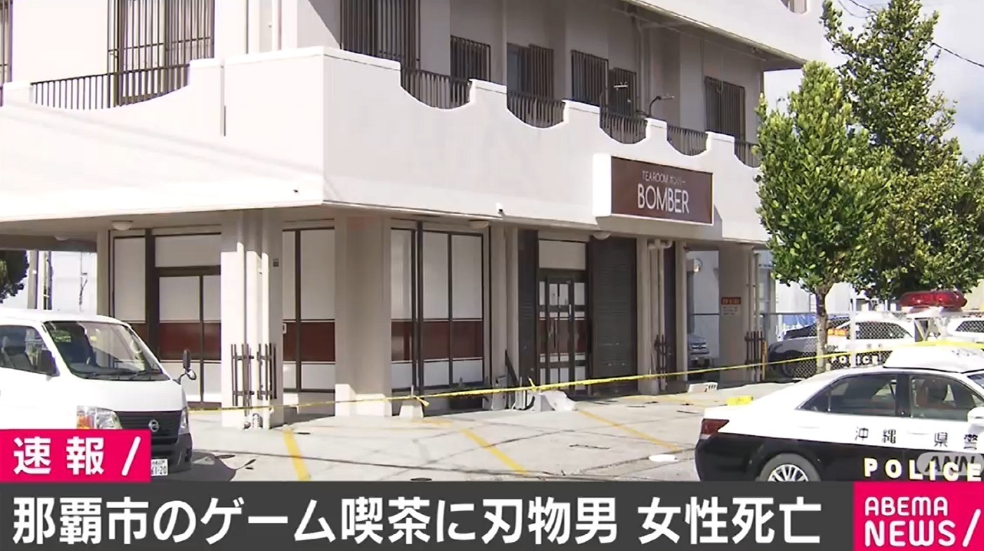 けさ、沖縄県那覇市のゲーム喫茶に刃物を持った男が押し入り、従業員2人を切りつけ、切りつけられた従業員の女性が死亡した。