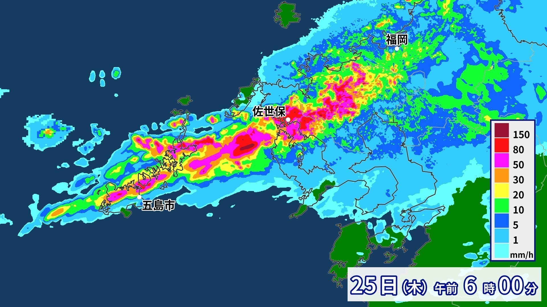 佐世保市(宇久地域を除く)付近 120ミリ以上(午前6時10分)