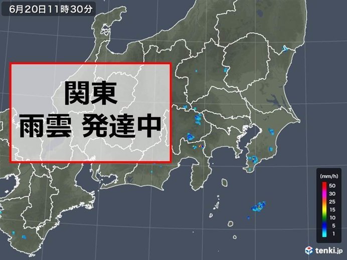 関東地方は、南から暖かく湿った空気が流れ込んでいるところに、上空に寒気を伴った気圧の谷が通過しているため、大気の状態が非常に不安定になってきました。すでに、山沿いだけでなく、千葉県など平野部でも、あちらこちらで、雨雲が確認されています。11時半現在、アメダスの地点では、まだ強い雨は観測されていませんが、この後は、広い範囲で、雨雲が発達するでしょう。