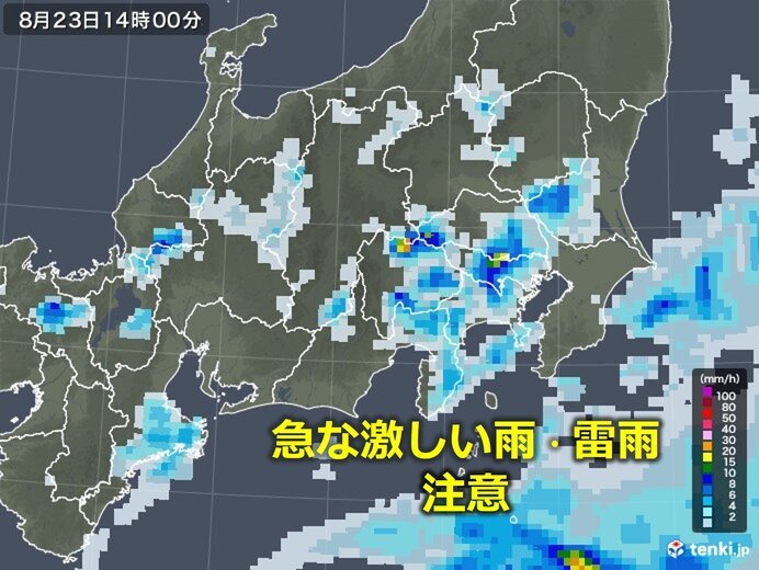 きょう23日も大気の状態が不安定。今朝、千葉県内で局地的に雨雲が発達。午後は関東のあちらこちらで雨や雷雨に。激しく降るおそれも。
