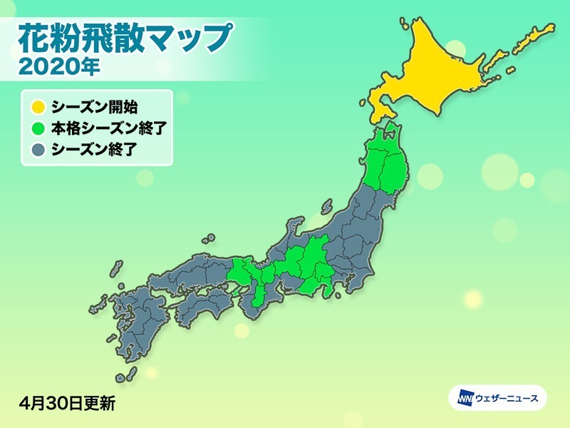 まだ基準以上の花粉が観測されている東海や近畿、東北北部についても、順次終了していく見込みです。
