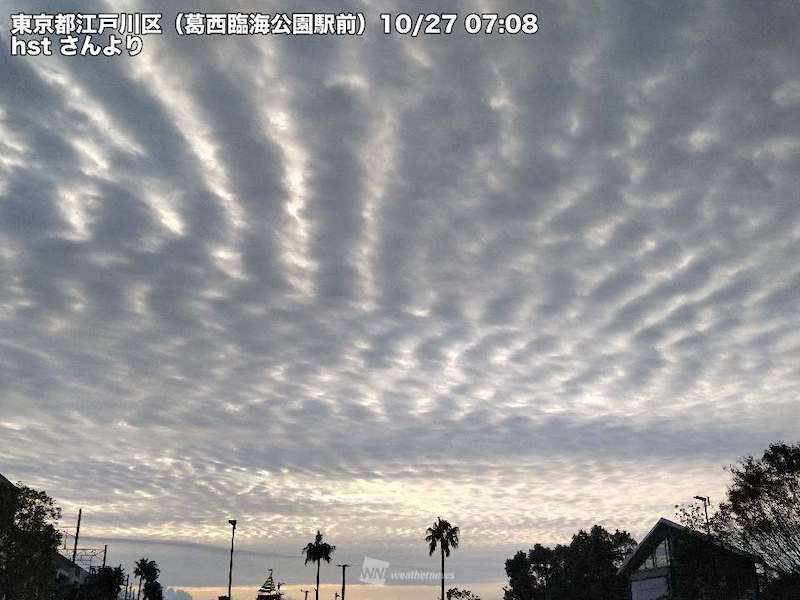 今日10月27日(日)は、関東地方では、波のような縞模様の雲が見られています。これらは天気が下り坂になる予兆です。