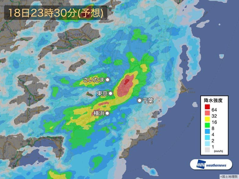東海地方を進んできた活発な雨雲は、このあと18日(木)夜遅くに関東を通過する見込みです。