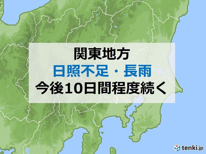 関東甲信地方では、6月25日頃から、日照時間が少なく、降水量の多い状態が続いています。この状態は、今後10日間程度は続く見込みです。農作物の管理等に十分注意してください。