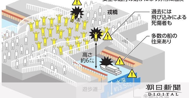 さらに、道頓堀橋の東側に幕を張って戎橋の方向を見えなくして、ギャラリーがダイブをあおったり滞留したりするのを防ぐことも予定している。