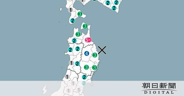 12日午後4時18分ごろ、岩手県沖を震源とする地震があった。青森県階上町で震度5弱、同県八戸市、三戸、五戸、南部各町と岩手県の盛岡市、軽米町で震度4など、東北地方や北海道で揺れが観測された。