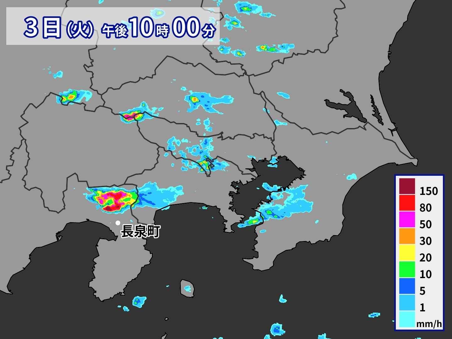 長泉町付近 120ミリ以上(午後10時10分)