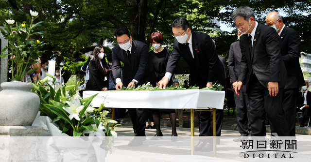 広島への原爆投下から6日で75年となるのを前に、広島市中区の平和記念公園内にある「韓国人原爆犠牲者慰霊碑」前で5日、慰霊祭が開かれた。
