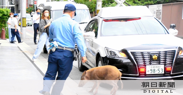 京都市中心部に出没したイノシシ。捕獲の瞬間