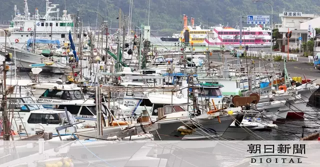 【動画】鹿児島県指宿市の山川港に避難した漁船などがひしめき合って停泊=金子淳撮影