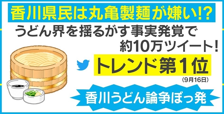 そんな中、Twitter上では「香川県民の怒りはごもっとも」「丸亀にないのに名乗るな」という反対意見や、「うどん食べたいときは丸亀製麺行っちゃう」「うまいうどんが食べられればどっちでも」という擁護意見、中には「大阪府民にとっての銀だこ」「北海道民にとっての花畑牧場」「広島県民にとっての広島焼き」と揶揄する声も。香川うどん論争に発展し、16日のTwitterトレンドで1位になるなど注目を集めた。