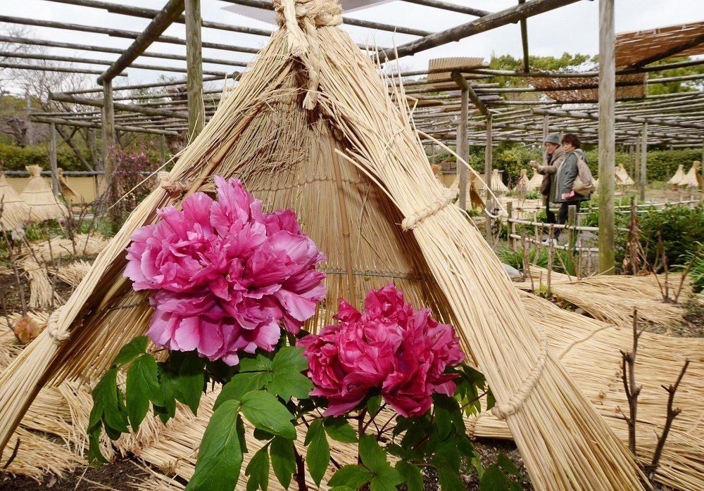 福岡市では年末年始、3月並みの最高気温が続き、同市東区の筥崎宮神苑花庭園では、冬ボタンが例年より1週間ほど早く見頃を迎えた。2月下旬まで楽しめるという。