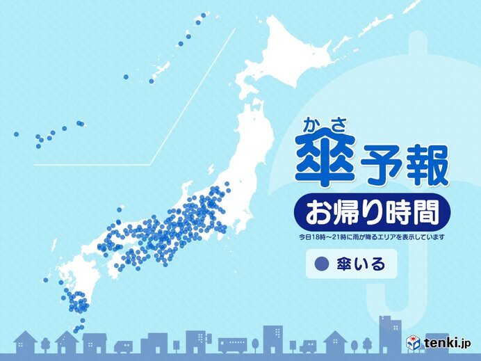 10日の夜は、沖縄や九州南部、中国・四国地方から東海、北陸にかけて雨が降るでしょう。西日本では局地的に激しい雨が降り、傘をさしていても濡れてしまうぐらいの降り方になる所もありそうです。