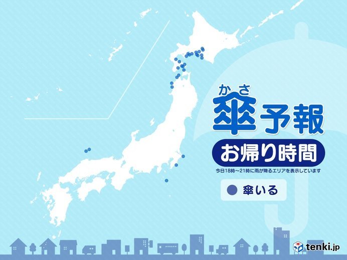 関東も千葉の沿岸部で、夜はにわか雨の所がありそうです。降る時間は短いですが、念のため折り畳みの傘があるとよさそうです。