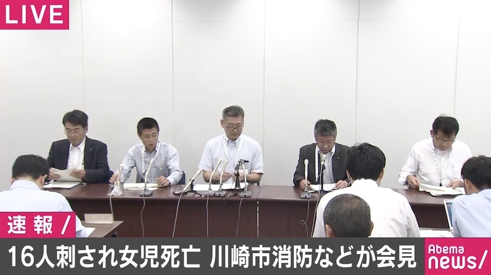 川崎市多摩区のJR登戸駅の近くで、小学生の児童ら16人が刺され女児1人が死亡、身柄が確保された男の死亡が確認された事件で、川崎市消防などが会見を開き福田紀彦市長がコメントを出した。読み上げられたコメントは以下のとおり。