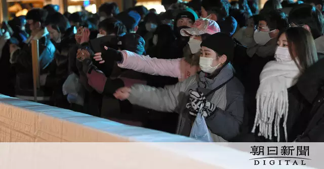 午前0時、年越しを知らせる太鼓の低音やさい銭の「チャリン」という音、参拝客が手を合わせる音が交差した。コロナ禍前は年間300万人ほどが訪れていたが、「もっと人がいるかなと思っていた。この寒さや、オミクロン株の拡大が影響したのでは」と広報担当者。0度前後という冷え込みの中、足を運んだ参拝客は、手を合わせて思い思いに祈った。