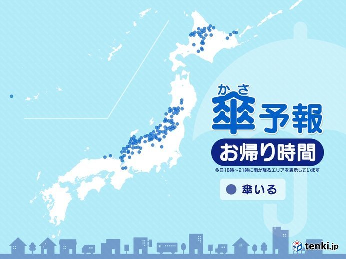 東北や北陸は、夜にかけて雨が降るでしょう。北陸を中心に大気の状態が不安定となり、落雷や突風などにも注意が必要です。関東も夜はにわか雨や雷雨の可能性があります。北海道は東部を中心に、夕方にかけて雨や雪が降りそうです。