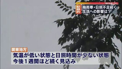 東京都内は7月に入っても日差しが少なく、肌寒い日が続いています。7月としては記録的な梅雨寒と日照不足になっていて、私たちの暮らしのさまざまなところに影響が出てきています。
