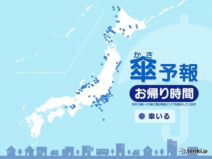 29日の夜は、北海道や東北、北陸、関東、東海の沿岸部を中心に傘の出番になりそうです。